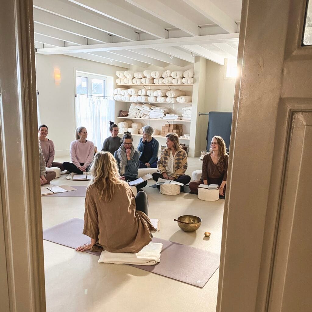 Daarnaast vragen we je naar jouw leven in zijn totaliteit te kijken. Dat betekent dat wat we met elkaar delen, je ook zelf thuis toe gaat passen. Het wordt geïmplementeerd in je dagelijks leven, want alleen als je het doet, zal het werken. Hierbij speelt de kennis van Ayurveda ook een grote rol. Langzaam ga je steeds meer ondersteunende routines en rituelen in je leven integreren. Je kan alleen delen, wat je zelf ook leeft.